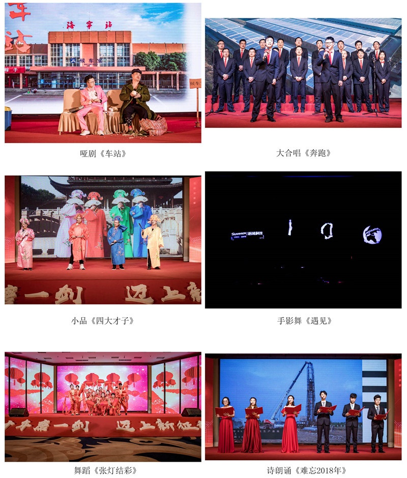 年會上還呈現(xiàn)了一臺由芯能人自行表演的豐富多彩的歌舞表演。喜慶歡樂的舞蹈《張燈結(jié)彩》拉開了歌舞表演的序幕,點燃了現(xiàn)場的熱情。有巧妙的將電站事業(yè)部日常工作融入到小品之中的《江南四大才子》,表演詼諧、有張力;原創(chuàng)作品詩朗誦《難忘2018》書寫2018年公司經(jīng)歷的點點滴滴;別具一格的手影舞《遇見》;僅僅依靠肢體語言和面部表情便能惟妙惟肖展現(xiàn)一個小故事的啞劇《車站》;此外還有歌喉美妙的個人獨唱等,無不彰顯著芯能人的活力和文藝才能。期間穿插的微信紅包大放送,更是頻頻將年會氣氛推向高潮。