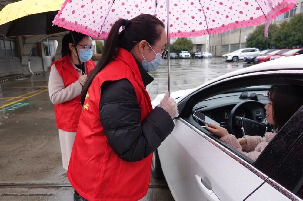 由于員工上班高峰期間門衛(wèi)測溫查碼工作量較大,黨員志愿者聽聞后毅然加入查碼隊(duì)伍,努力守好公司防疫“安全門”。志愿者們每天在上班時(shí)段提前30分鐘到崗,他們戴好口罩,身穿紅馬甲,對(duì)進(jìn)入員工和車輛進(jìn)行檢測,引導(dǎo)員工有序測溫掃碼。