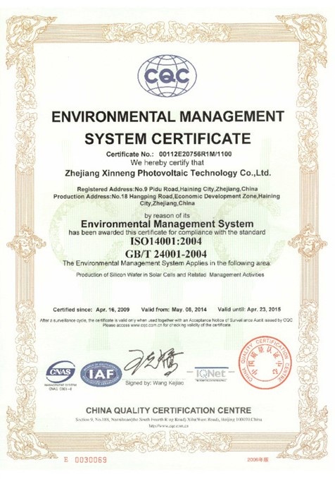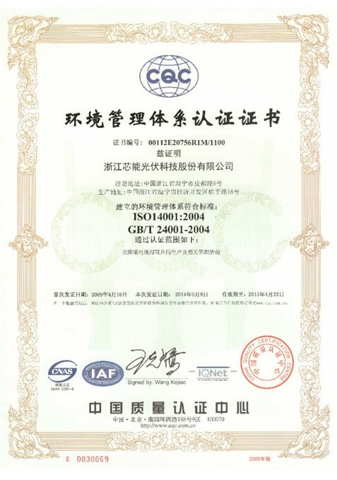 公司通過ISO14001:2004環境管理體系認證 2009-04-16 00:00:00 浙江芯能光伏科技股份有限公司 瀏覽次數 7006 上一條公司通過ISO9001:2000質量管理體系認證 下一條浙江省科技廳常務副廳長壽劍剛蒞臨我司調研