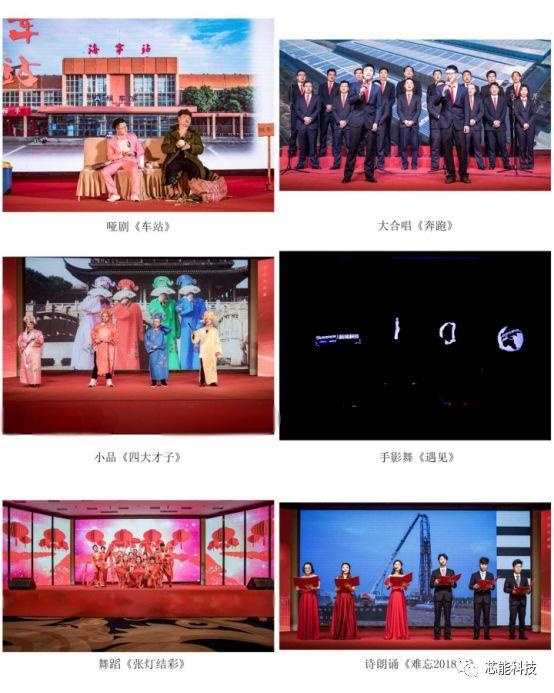 年會上還呈現(xiàn)了一臺由芯能人自行表演的豐富多彩的歌舞表演。喜慶歡樂的舞蹈《張燈結(jié)彩》拉開了歌舞表演的序幕,點燃了現(xiàn)場的熱情。有巧妙的將電站事業(yè)部日常工作融入到小品之中的《江南四大才子》,表演詼諧、有張力;原創(chuàng)作品詩朗誦《難忘2018》書寫2018年公司經(jīng)歷的點點滴滴;別具一格的手影舞《遇見》;僅僅依靠肢體語言和面部表情便能惟妙惟肖展現(xiàn)一個小故事的啞劇《車站》;此外還有歌喉美妙的個人獨唱等,無不彰顯著芯能人的活力和文藝才能。期間穿插的微信紅包大放送,更是頻頻將年會氣氛推向高潮。