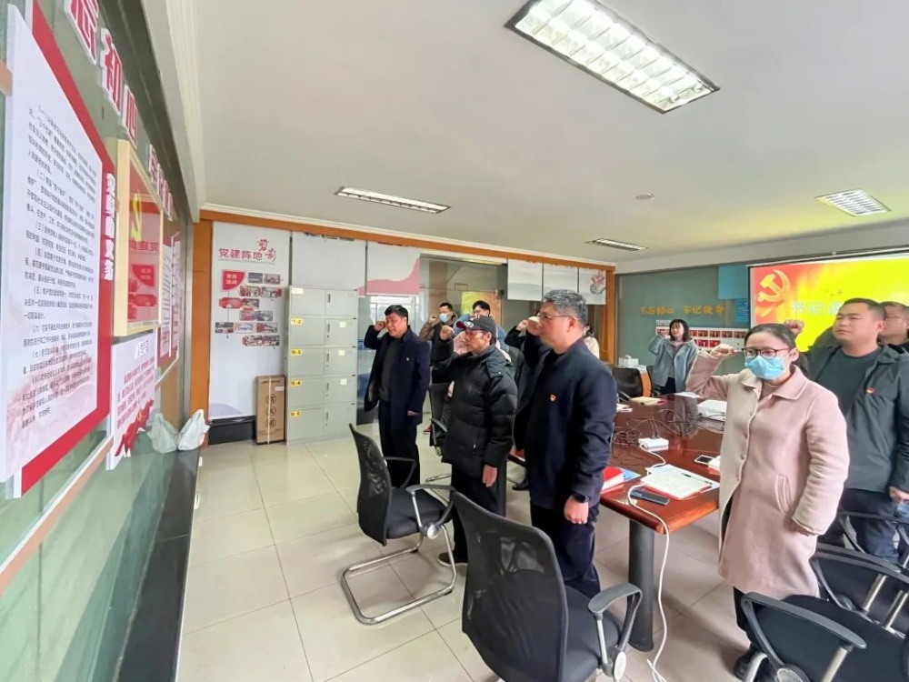 會議開始前,全體黨員面向鮮紅的黨旗,鄭重高舉右手,重溫入黨誓詞。錚錚誓言,鏗鏘字句,激勵著全員進一步堅定理想信念,牢記初心使命。