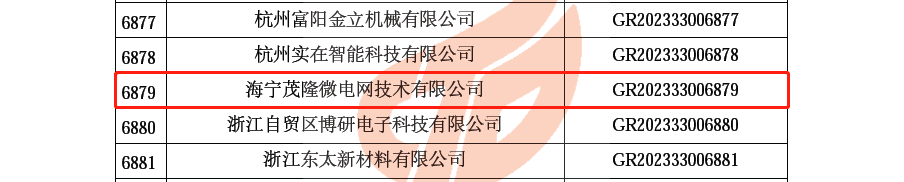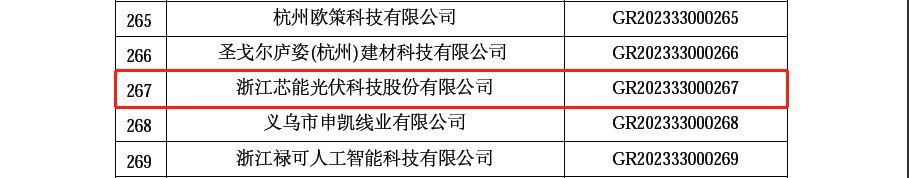 近日,全國高新技術企業認定管理工作領導小組辦公室發布了《對浙江省認定機構2023年認定報備的高新技術企業進行備案的公告》,浙江芯能光伏科技股份有限公司榮列其中,再次順利通過國家高新技術企業復審。芯能科技下屬子公司海寧茂隆微電網技術有限公司、桐鄉科聯新能源有限公司也成功通過認定,由此正式邁入高新技術企業行列,開啟新篇章!