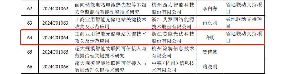 此外,在浙江省科學技術廳公布的《2024年度“尖兵領雁+X”研發攻關計劃第一批立項項目清單》,由芯能科技牽頭申報的《工商業用智能光儲電站關鍵技術攻關及示范應用》成功入選“尖兵”計劃項目。
