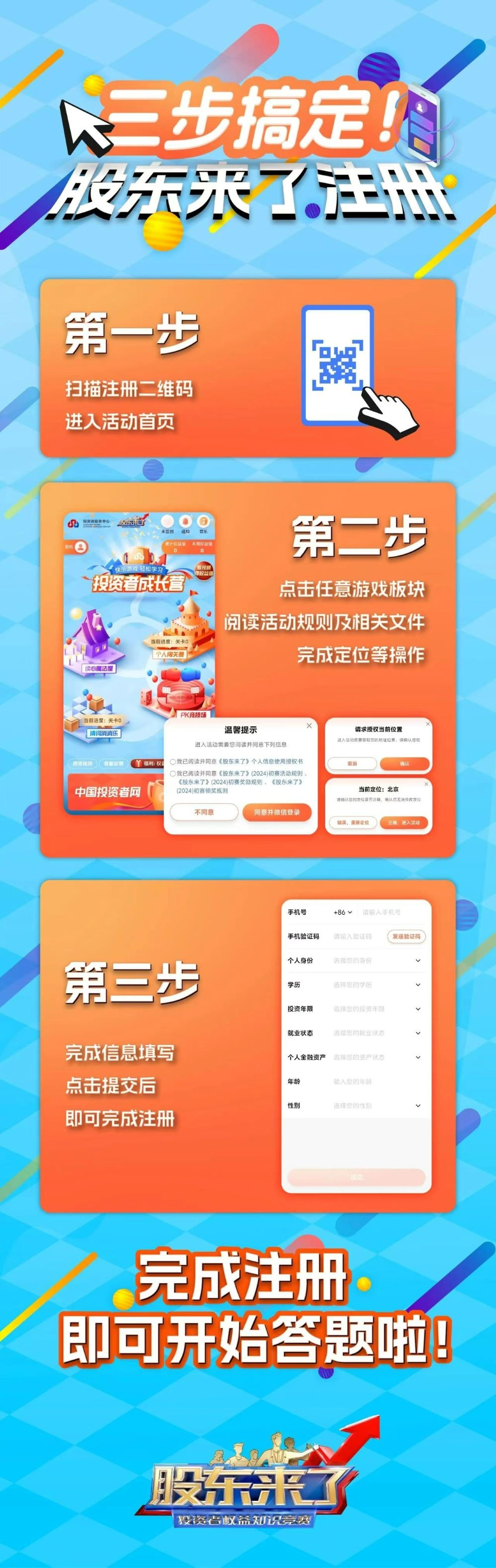 為深入學習貫徹習近平新時代中國特色社會主義思想,全面落實黨的二十大精神和中央金融工作會議部署要求,宣傳《國務院關于加強監管防范風險推動資本市場高質量發展的若干意見》等資本市場重大改革部署安排,中證中小投資者服務中心舉辦《股東來了》(2024)投資者權益知識競賽(以下簡稱《股東來了》(2024)),引導投資者客觀看待和理解全面深化資本市場改革的意義和作用,通過寓教于樂的方式提振投資者信心,增強投資者獲得感。、